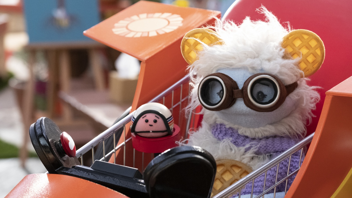 The show is a thoroughly enjoyable but peculiar creation. Like the two endearing puppets whose adventures we follow, it is fuzzy and lovable but a bit all over the place. Granted, I did not grow up watching Sesame Street or other educational shows for children, so I am not sure if what puzzles me is actually part of the genre. To start with, ‘Waffle and Mochi’ is literally all over the place: the main characters embark on their wanderings from the land of frozen foods, where they try to learn how to cook ice, the only ingredient at hand, by watching Julia Child on TV. Looking for live, fresh ingredients, they jump on a frozen food truck and they end up at a supermarket. Downstairs, the store offers both fresh and packaged food; among the recurrent characters are Shelfie, a shelf, and a baker. The variety and quality of the goods is such that Waffles points out that all the food is made of food, a jab at industrial products that is a bit ungenerous towards their own frozen origins.