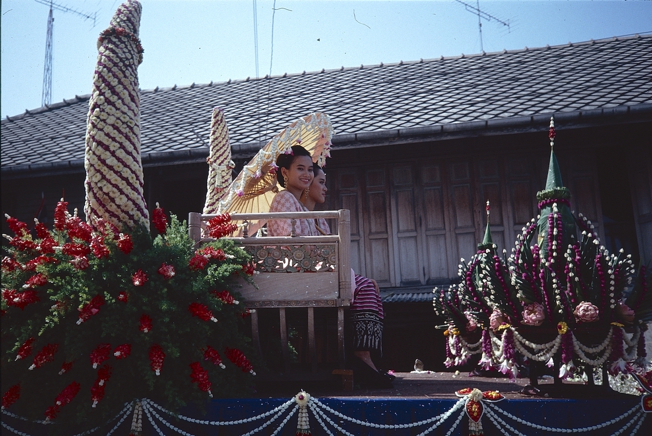 We were staying in a house that belonged to the aunt of one of them. I have clear memories of it. All built in wood, on stilts, it didn’t have actual walls, but rather sliding shutters that could be opened at night to enjoy some breeze. There were no beds. We slept on woven mats, but we did have mosquito nets. It was also the first time I tasted Laotian food: actually, my hosts were eagerly observing me while I put some of it my mouth. They were expecting a reaction because that meal (it some some sort of ground meet with a red sauce) was unbelievably spicy. They got a good laugh out of it… At the time, food was not my professional focus, but I was already very curious about it, as another entryway to cultures I was not familiar with. Tasting, sharing meals allowed me to get to know new sensory worlds. We had traveled to Hua Hin to take part in a festival during which people threw water and flour on each other for fun. Until I saw this picture, I had no recollection of this episode. I have googled Hua Hin, but I cannot find any mention of that kind of festival. Yet there we are, covered in sticky flour hardening in the heat. So many bits and pieces of that trip came back to me. Just one of the many splinters of my past, often unmoored, out of context, but rich of sensory details, which I accessed while looking at my old slides.
